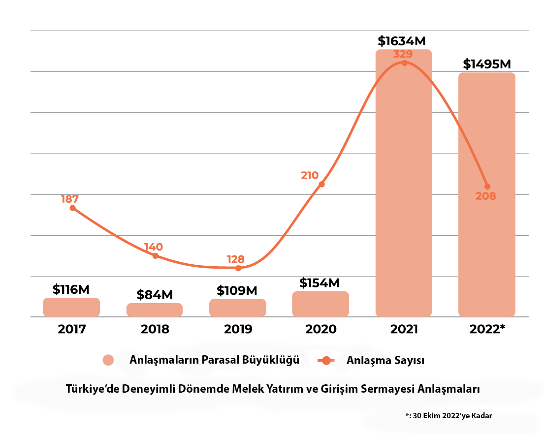 İkinci fonunlarını kuran deneyimli fonlar, başarı hikayeleri ve birçok regülasyon sayesinde yeni kurulan fonlar, 2021 yılında Türkiye startup ekosisteminin yatırım harcamalarını bir milyar doların üzerine çıkardı ve 329 yatırım turunda 1.634 milyon dolar yatırım yaptı. Getir tek başına 2021'de 983 milyon dolar, 2022'nin ilk dokuz ayında ise ek 768 milyon dolar topladı. Bu tutarlar çıkarıldığında bile 2021 ve 2022'deki yatırım tutarları 2020'ye göre 4 kattan fazla.